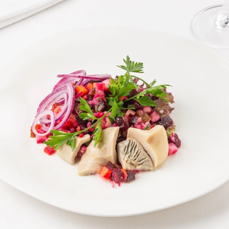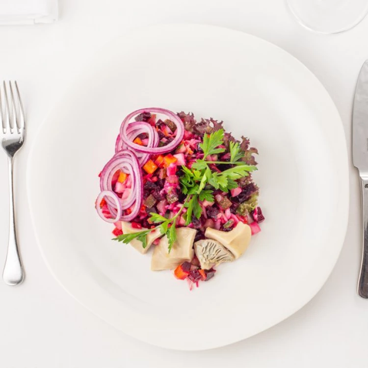 Картофель, морковь, огурцы соленые, огурцы свежие, свекла, капуста квашеная, лук красный, сельдь, масло нерафинированное