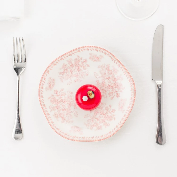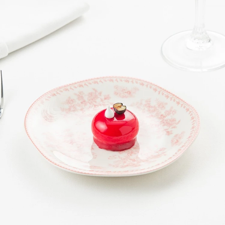Бисквит миндальный, сливочно- шоколадный крем, вишневое пюре, сахар