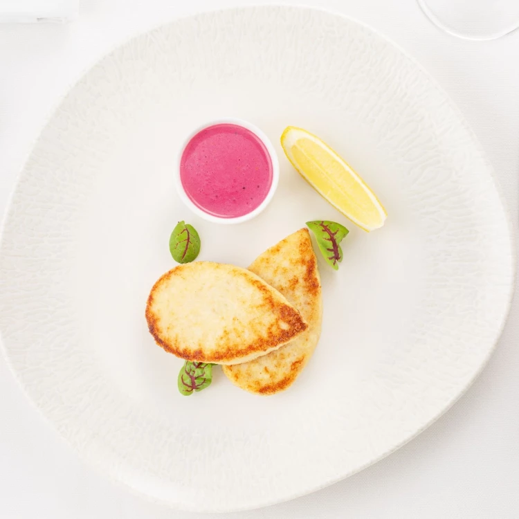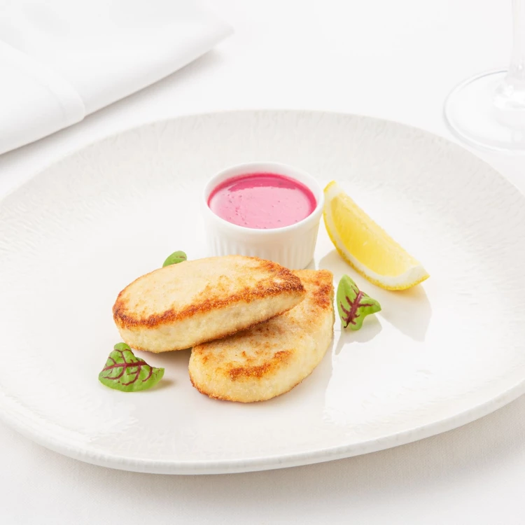 Щука филе, масло сливочное, сливки, сухари панировочные, свёкла, горчица зерновая, лимон, лук репчатый