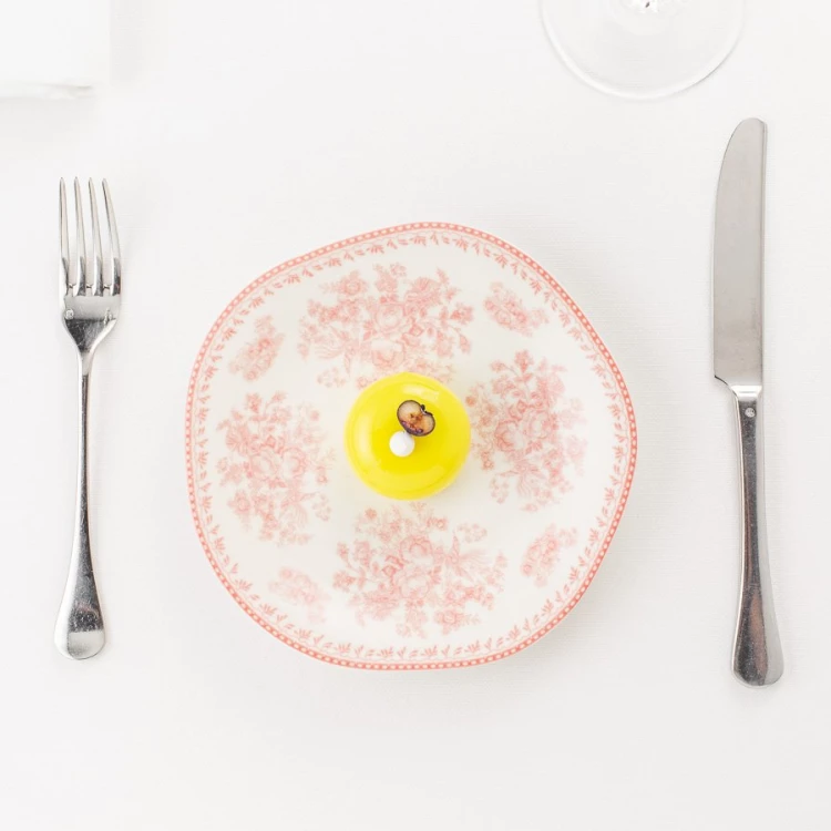 Бисквит миндальный, сливочно-шоколадный крем, манго, пюре манго и маракуйя, сахар