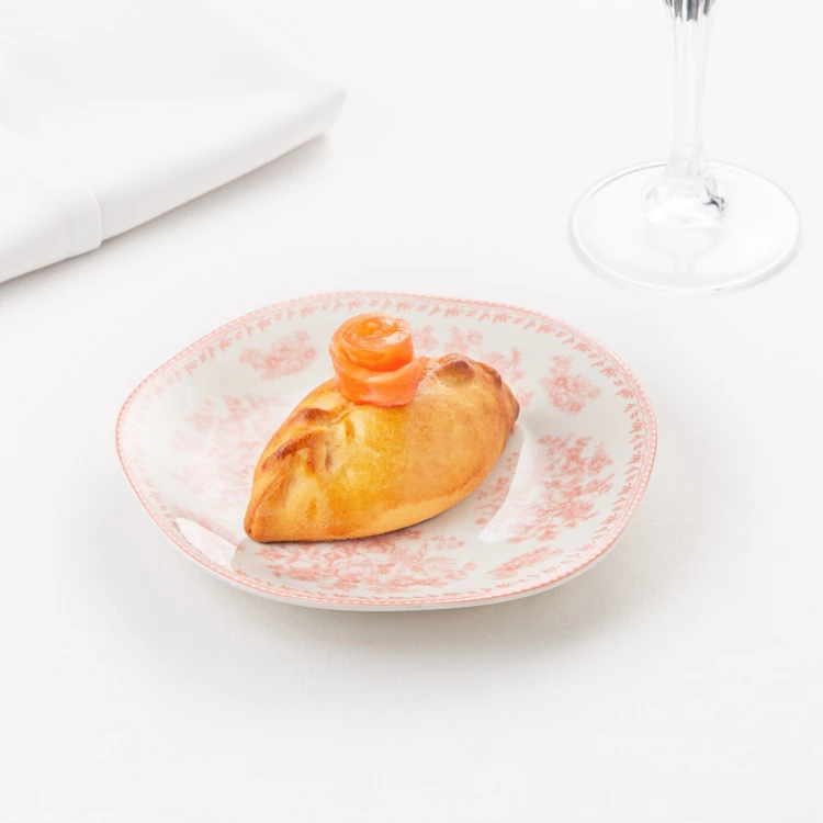 Тесто: мука пшеничная, молоко, сахар, масло сливочное, соль Начинка: лосось, лук репчатый, сливочное масло, соль, перец молотый, яйцо