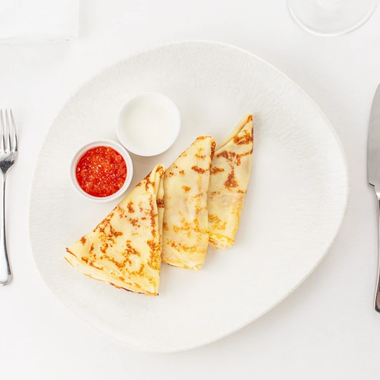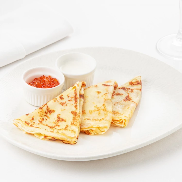 Молоко, мука, яйцо, соль, сахар, икра красная
