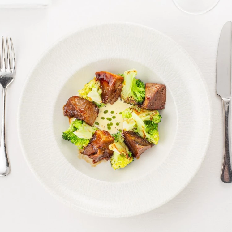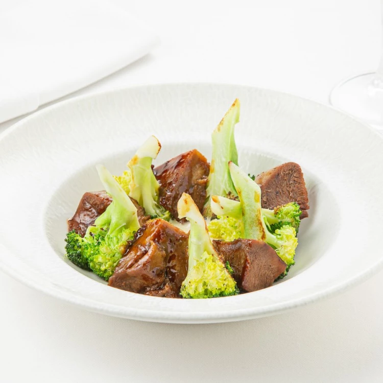 Язык говяжий, брокколи, соус устричный, горчица, сливки