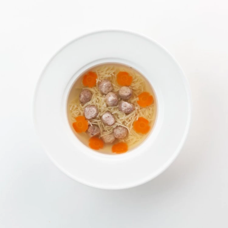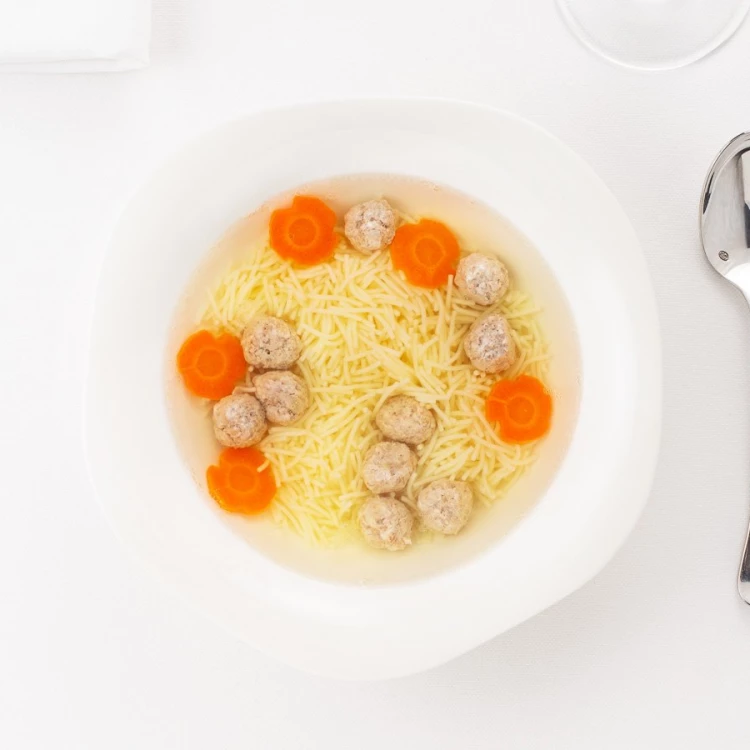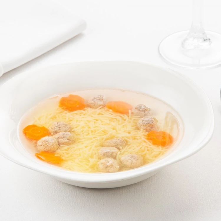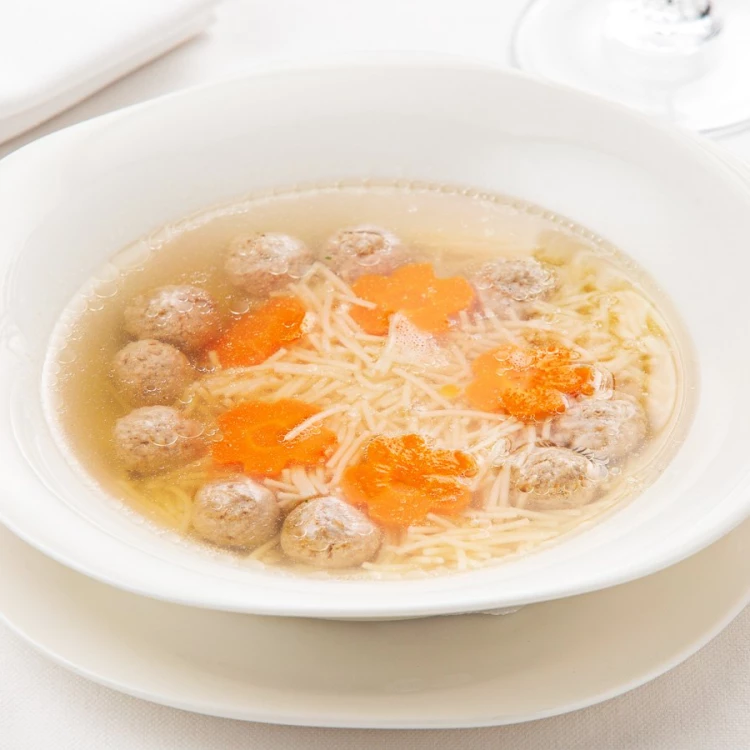 Говядина, яйцо, сливки, лук, соль, бульон куриный, вермишель, морковь, зелень.