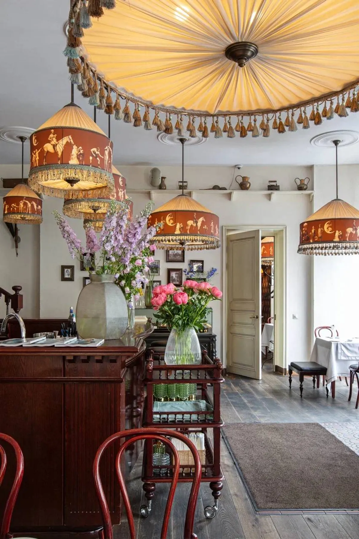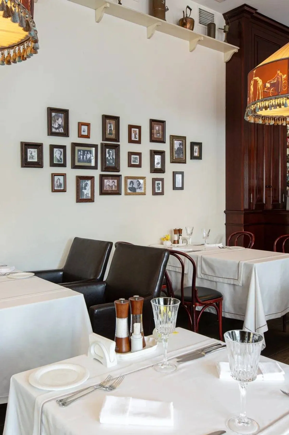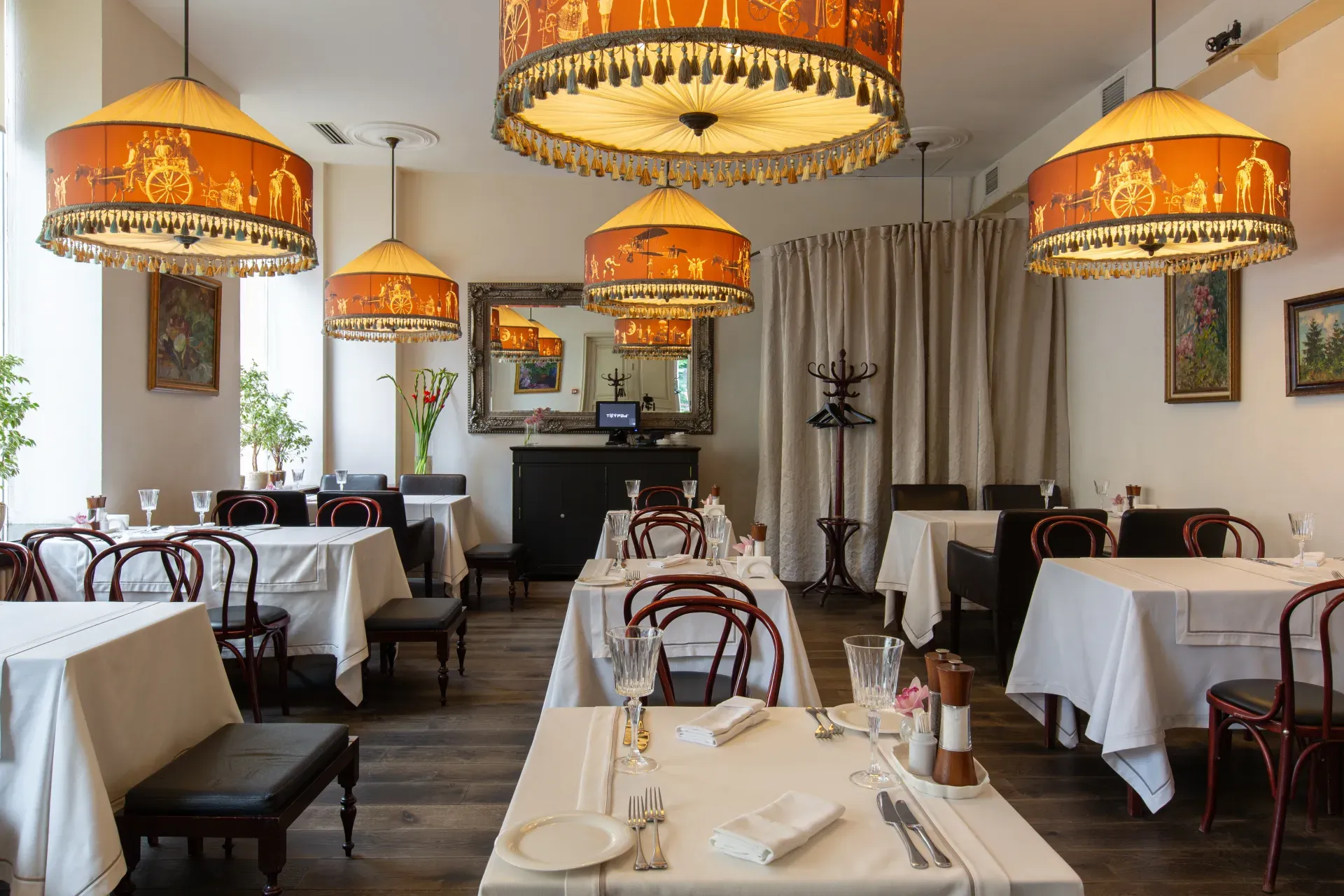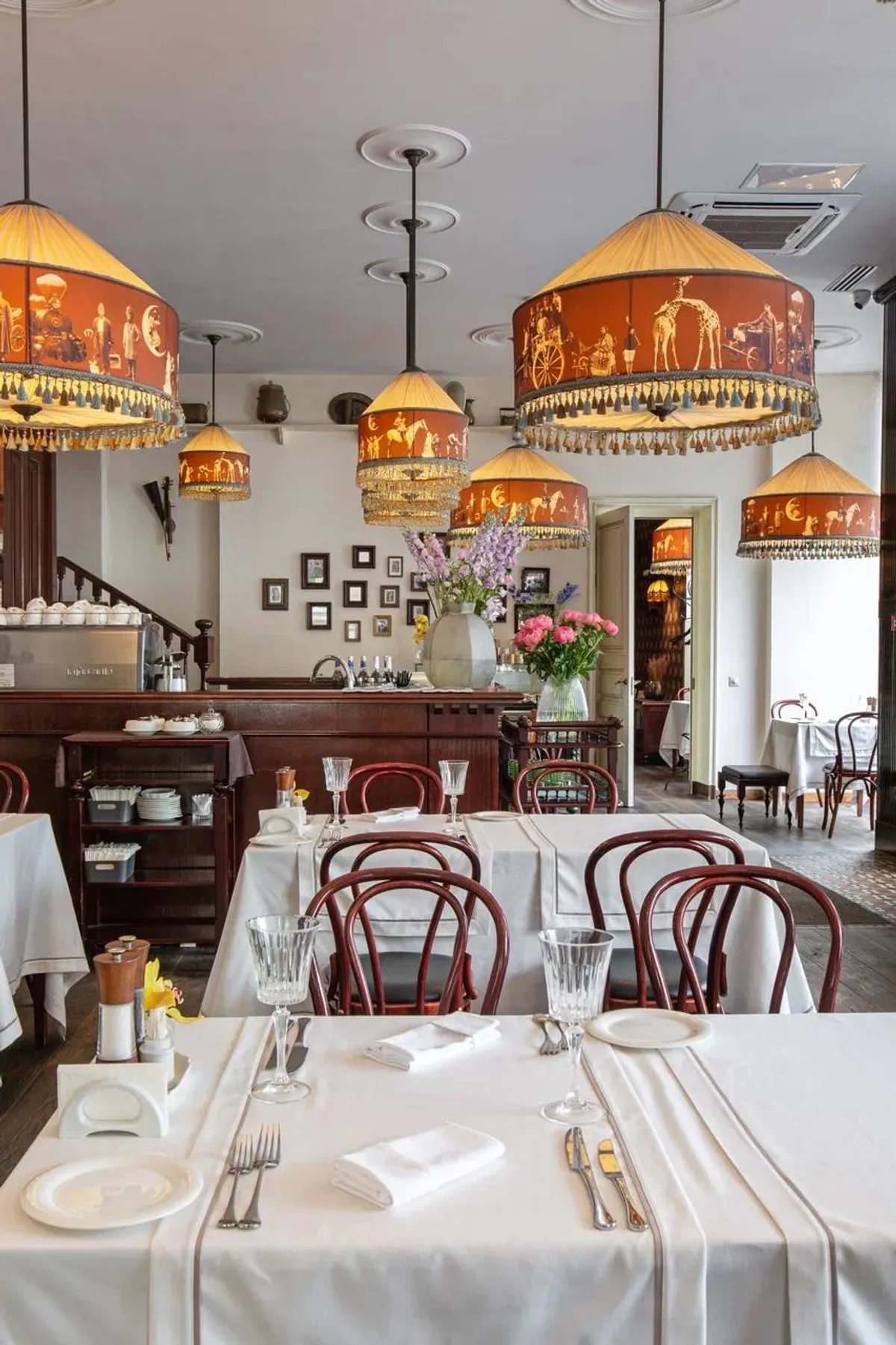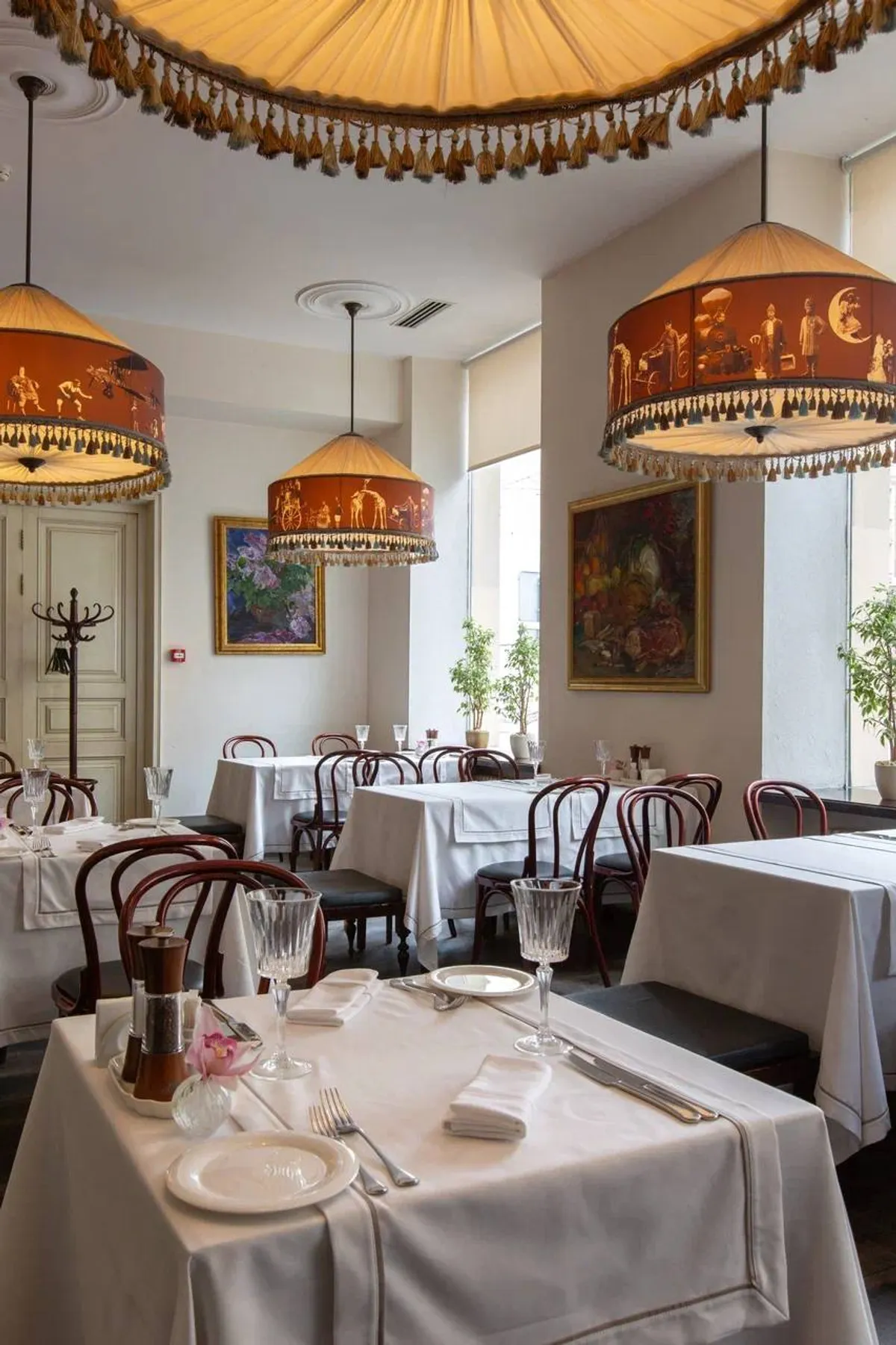 Удобная локация в тихом центре, между Таврическим садом и Смольным. Сдержанный интерьер столичной квартиры начала ХХ века с уютными абажурами, венскими стульями и фотографиями на стенах. Три зала разного размера подойдут как для деловых обедов, дружеских пирушек, так и для семейных застолий. Кухня — русско-европейская, в современной подаче, с предложениями на целый день — от ярких разнообразных завтраков до изысканных ужинов. Утренние каши, йогурты, омлеты и диетические пудинги сменяют дневные супы, пельмени, киевские и щучьи котлеты; вечером — завидное разнообразие блюд для винного застолья или пирушки с более крепкими напитками. В меню найдется даже форшмак и фаршированный карп.